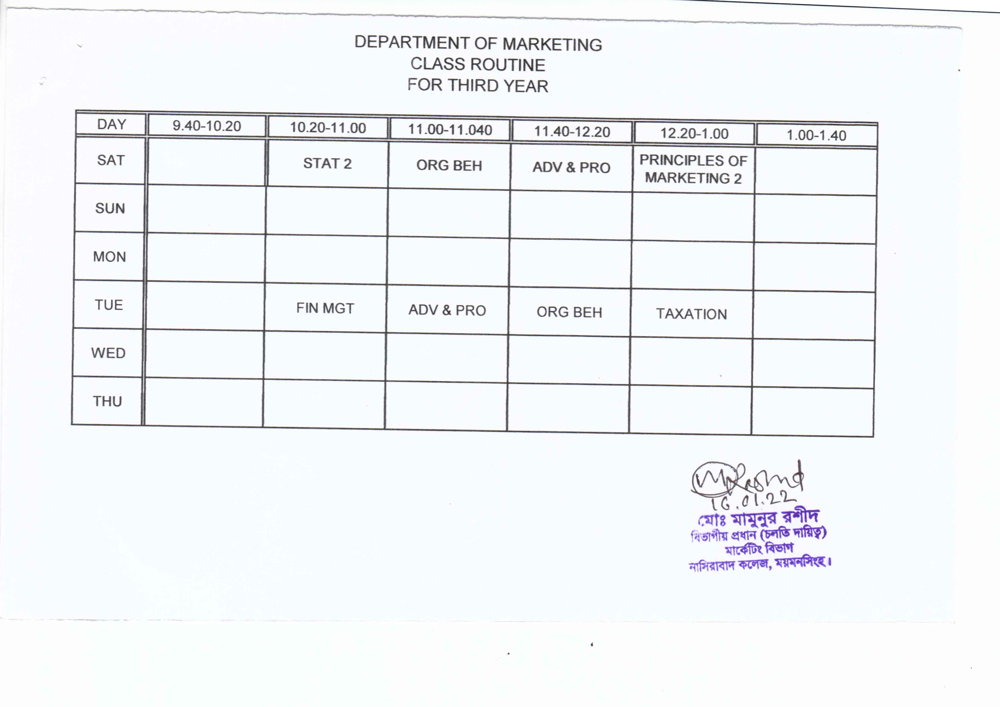 | 5 | ২০১৮-২০১৯ শিক্ষাবর্ষের অনার্স ৩য় বর্ষ মার্কেটিং বিভাগের ক্লাস রুটিন | Honors 3rd Year | 18-Jan-2022 | View Download |