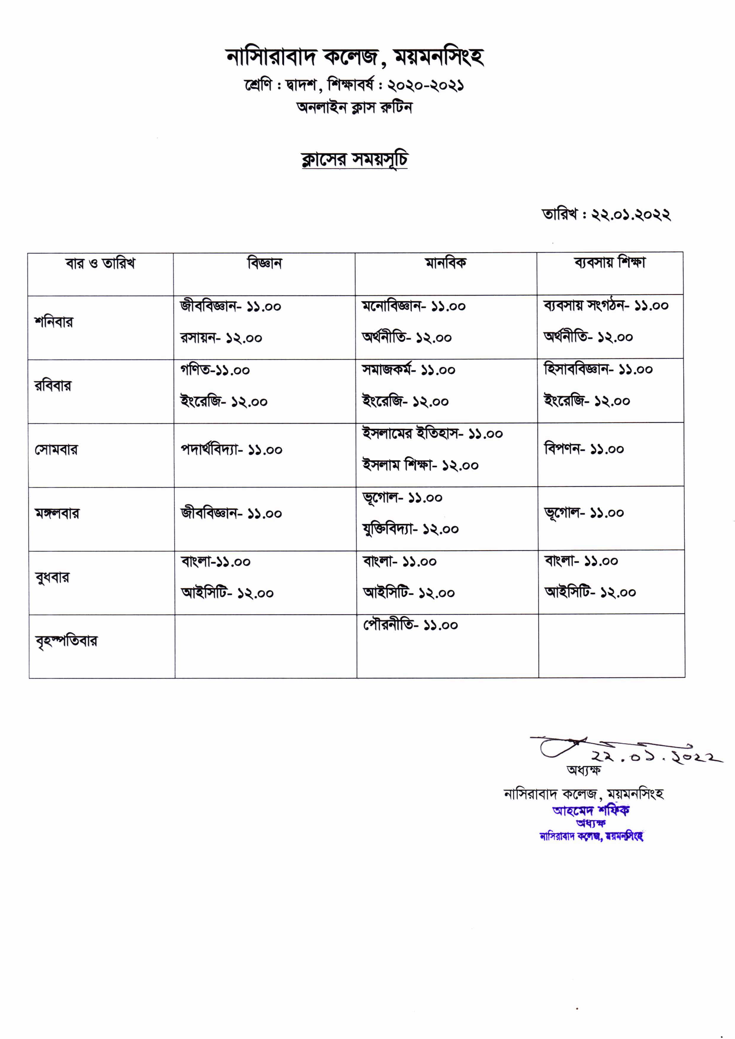 | 7 | ২০২০-২১ শিক্ষাবর্ষে দ্বাদশ শ্রেণির অনলাইন ক্লাশ রুটিন | HSC 2nd year | 23-Jan-2022 | View Download |