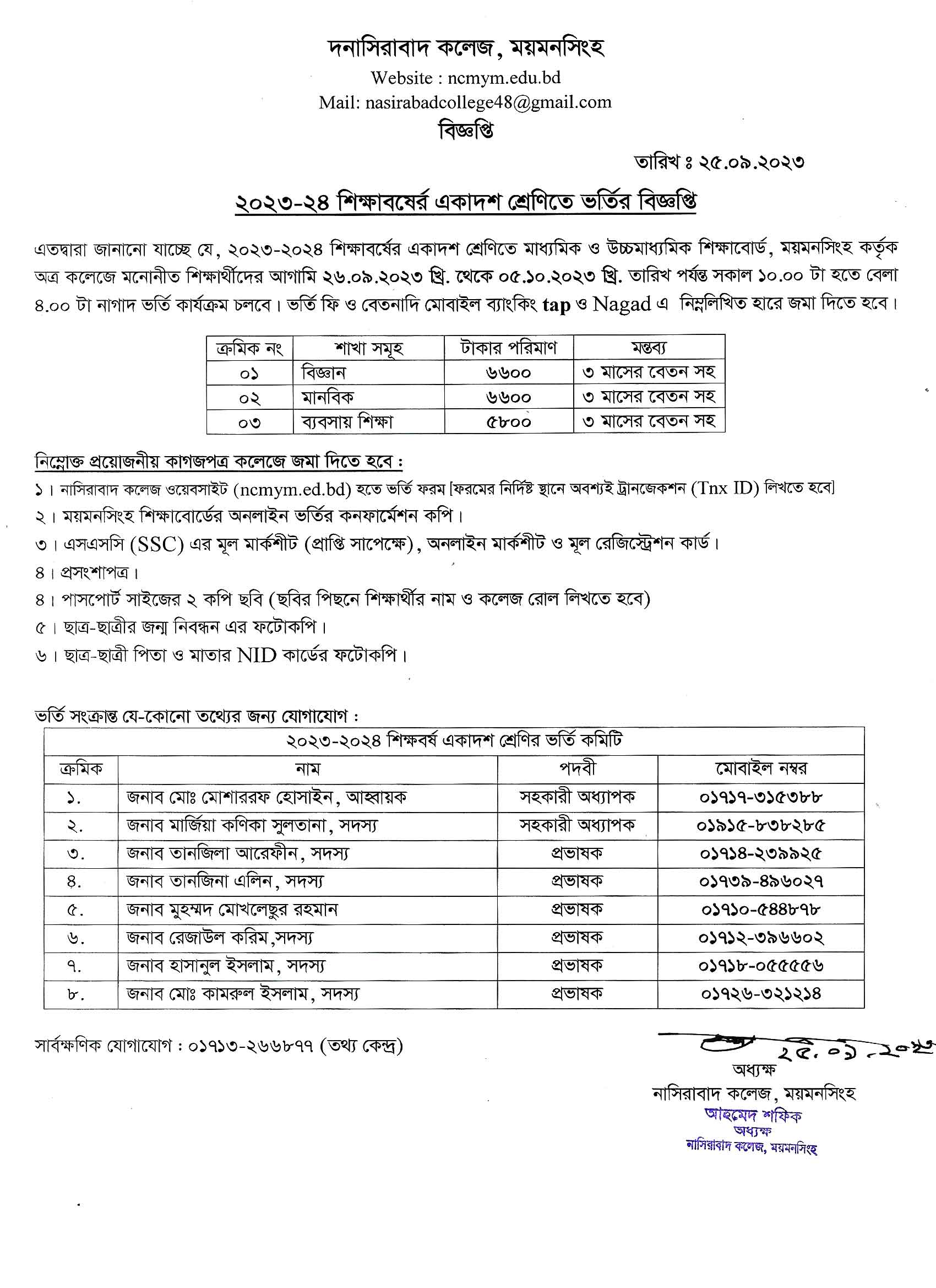 ২০২৩-২৪ শিক্ষাবর্ষে একাদশ শ্রেণিতে ভর্তির বিজ্ঞপ্তি।
